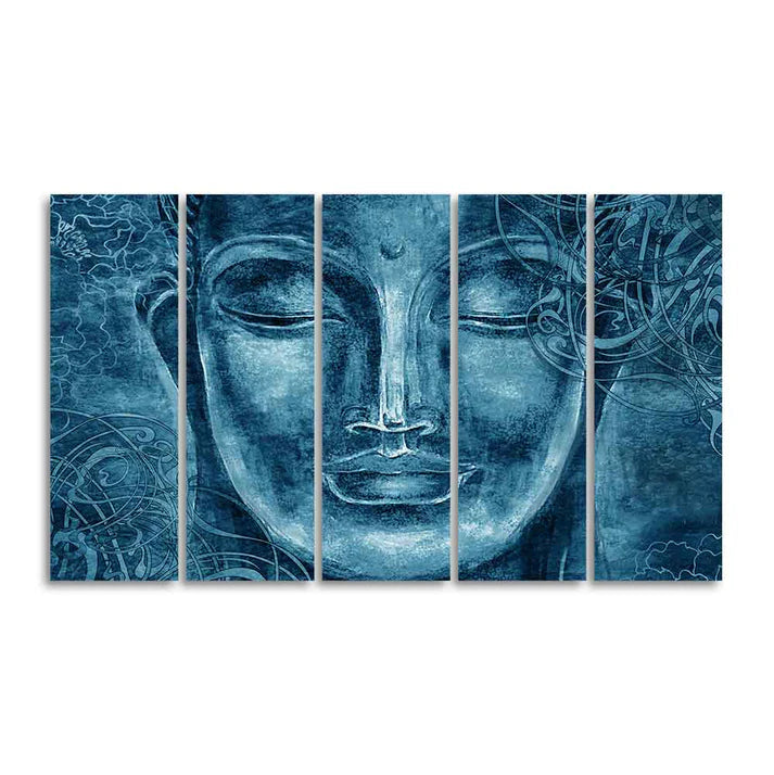 Face Sculpture of Buddha Five Pieces Wall Painting