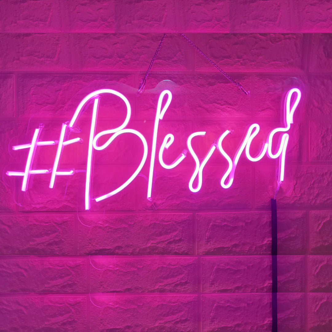 Glexy Beautiful Blessed Neon Sign, Wall Decor, Neon Signs for room (8x14 In)