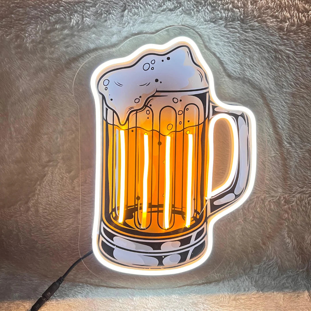 • Design: Neon beer mug artwork – fun, vibrant & lively.
