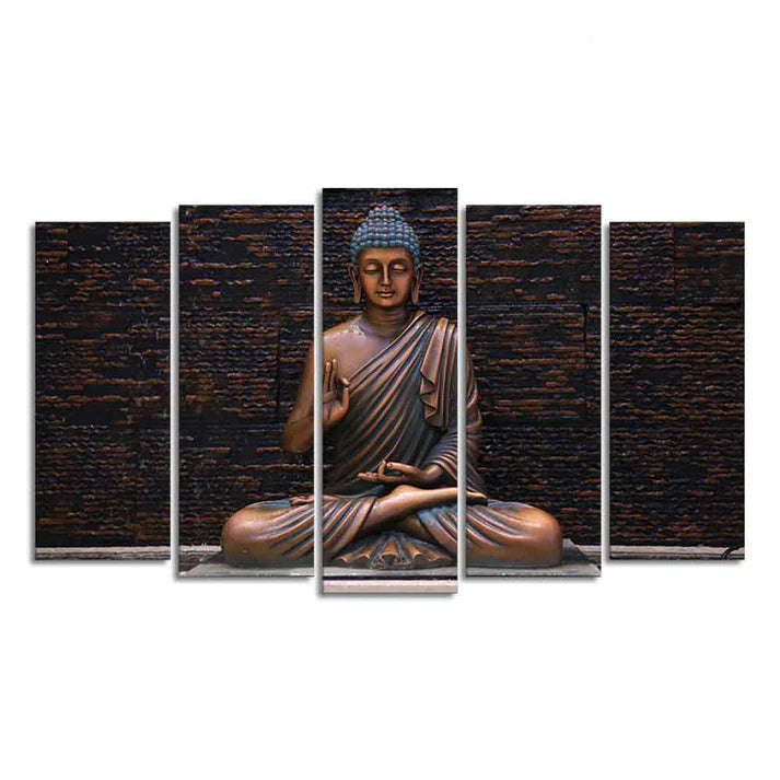 Lord Buddha Meditating Statue Canvas Wall Painting Set of Five