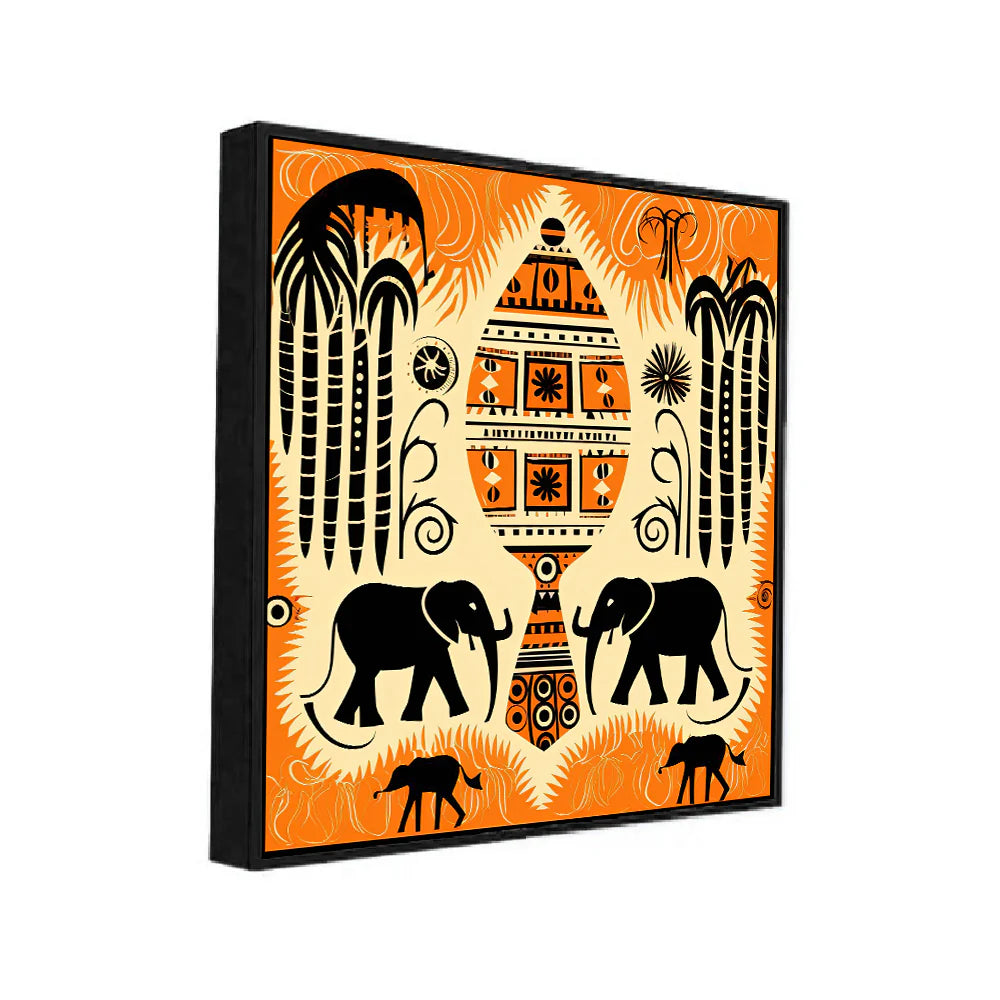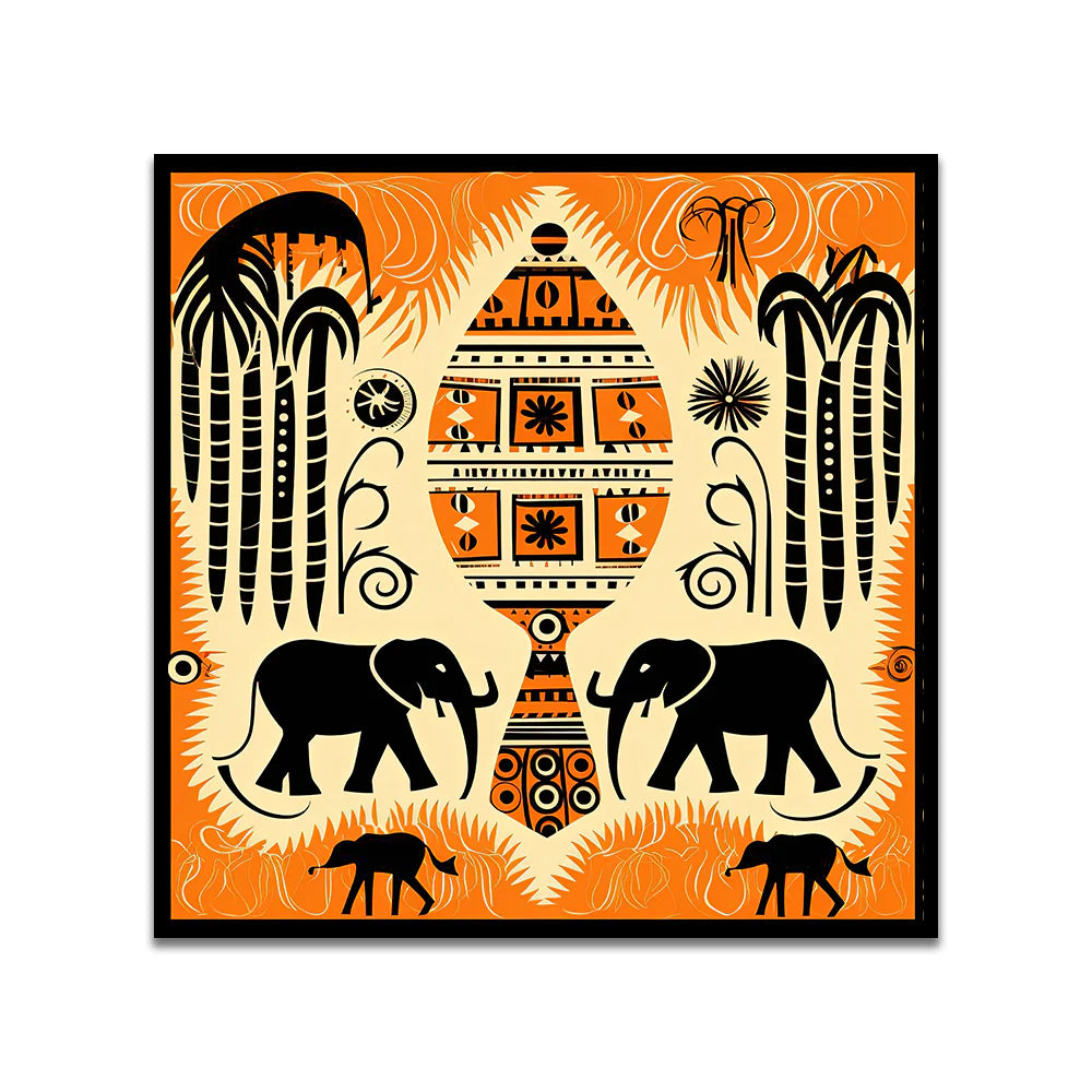 Tribal Elephant Ethnic Village Pot Motif with Nature Elements Canvas Wall Painting